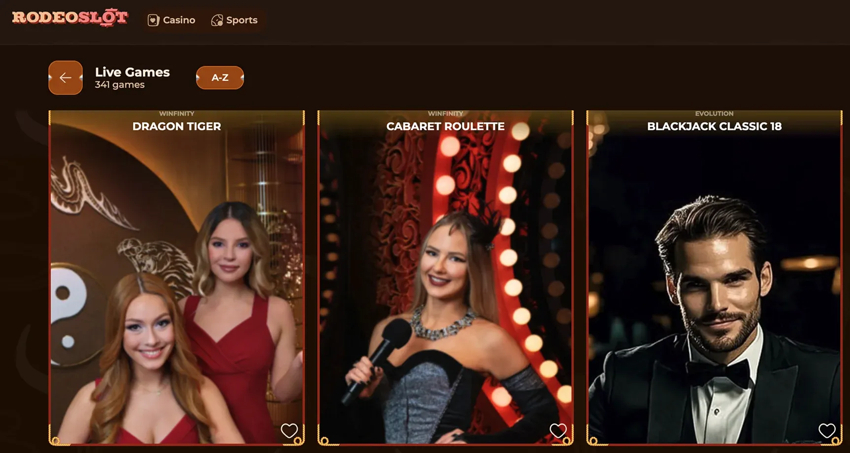 Selección de Juegos en Rodeoslots Live Casino